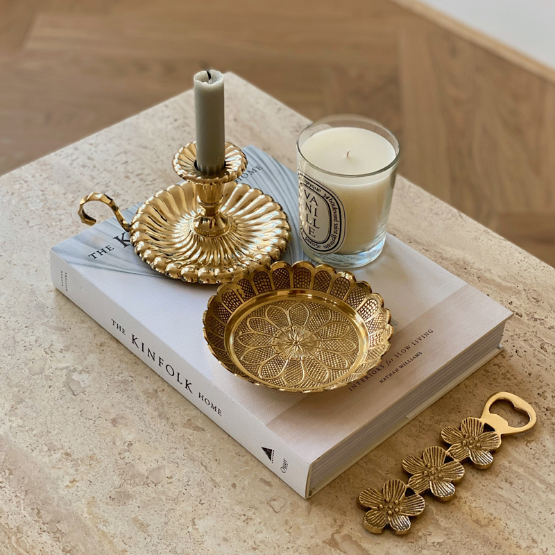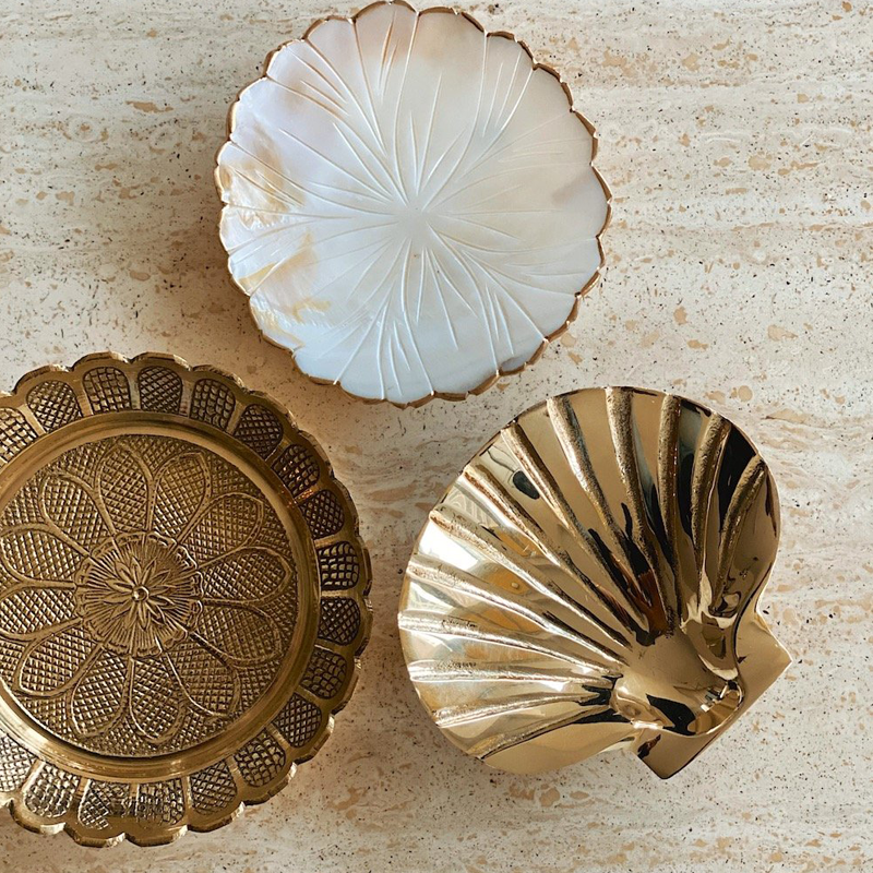 Deze schaal van messing is een prachtig stuk! Het doet ons denken aan toen we als kleine meisjes aan de kaptafel van onze oma speelden en ons verwonderden over al die mooie sieraden en doosjes. Hiermee creëer je je eigen speciale plek om al je kleine schatten en sieraden in op te bergen.