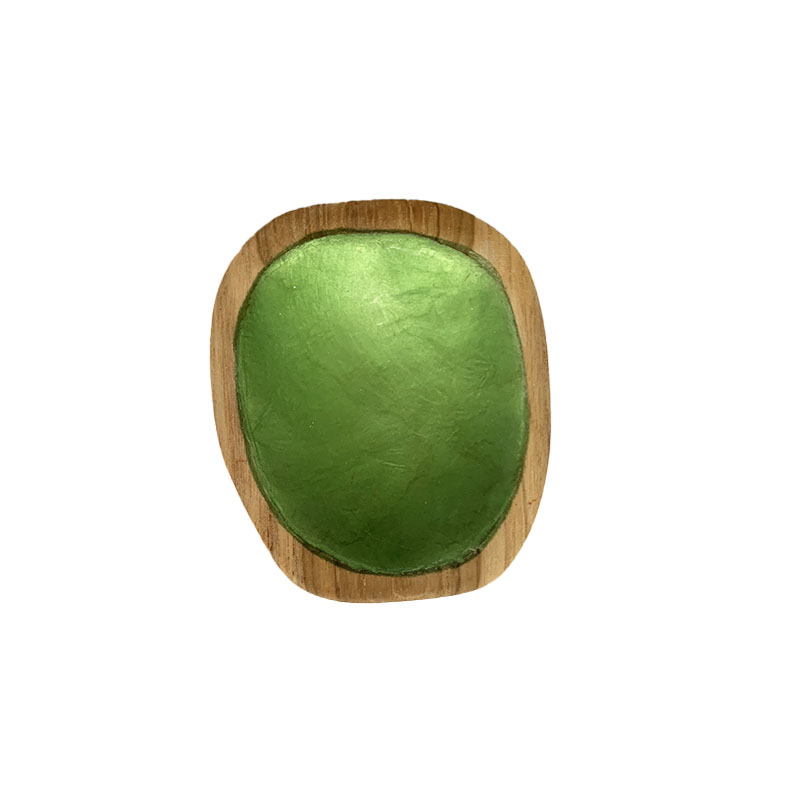 Houten schaaltje waarvan de binnenkant is ingelegd met een capiz schelp. De houten schaaltjes kun je op verschillende manieren gebruiken, leuk om bijvoorbeeld een geurblokje op te leggen.
