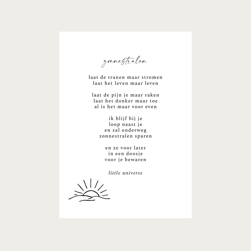 Maak iemand blij met dit gedichten kaartje van Little Universe! Vooral leuk om te geven aan iemand die het zonnestraaltje in huis is.