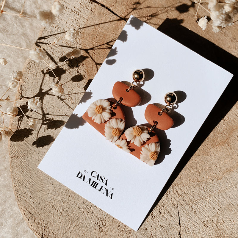 Handgemaakte polymeer klei oorbellen van het merk Casa da Milena! Vanwege het gebruik van polymeer klei zijn de oorbellen super licht! Geen last aan je oorlellen dus