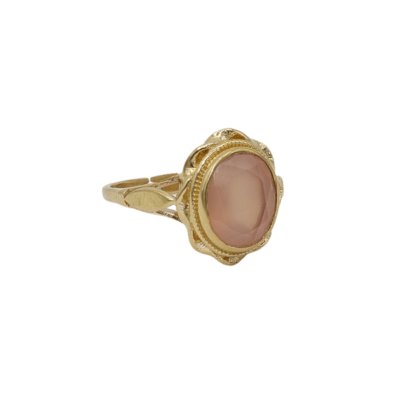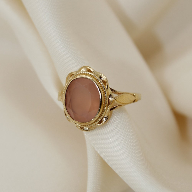 | Materiaal | 18K verguld over messing, echt roze chalcedoon |